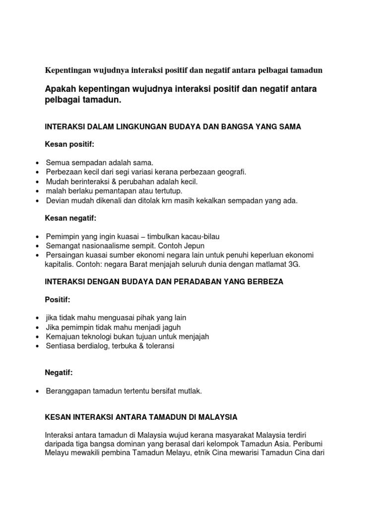 Kepentingan Wujudnya Interaksi Positif Dan Negatif Antara Pelbagai Tamadun