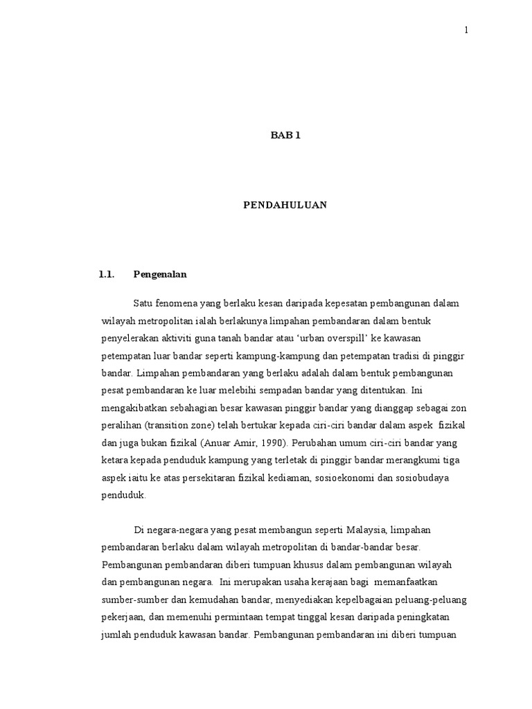 Contoh Sorotan Literatur Kesan Pembangunan Bandar Baru Terhadap Man