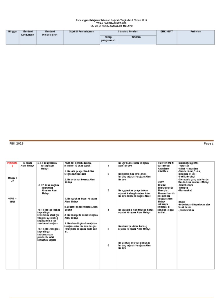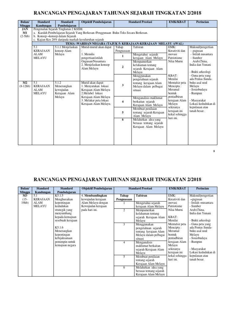 Doc Rancangan Pelajaran Tahunan Sejarah Tingkatan 2 Tahun 2018 Tema Warisan Negara Tajuk 5 Kerajaan Alam Melayu Halim Afif Academia Edu