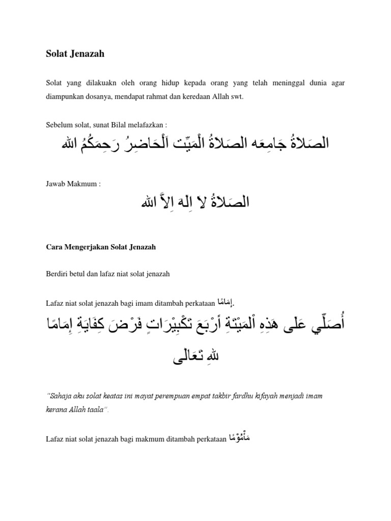 Lafaz Niat Memandikan Jenazah Perempuan Doc