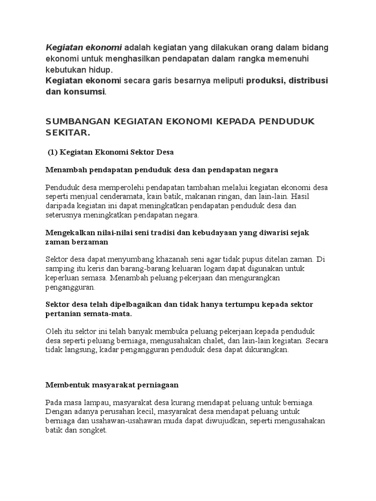 Kegiatan Ekonomi Dan Impak Alam Sekitar