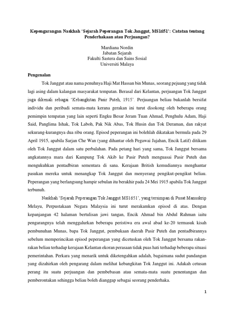 Tok Janggut Biodata Dan Latar Belakang Documents