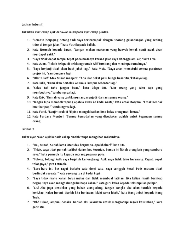 Latihan Cakap Ajuk Dan Cakap Pindah