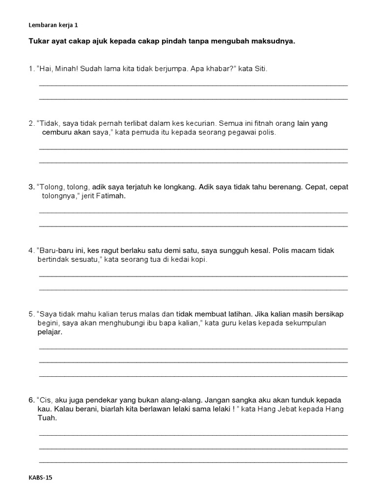 Latihan Cakap Ajuk Dan Cakap Pindah Tahun 7