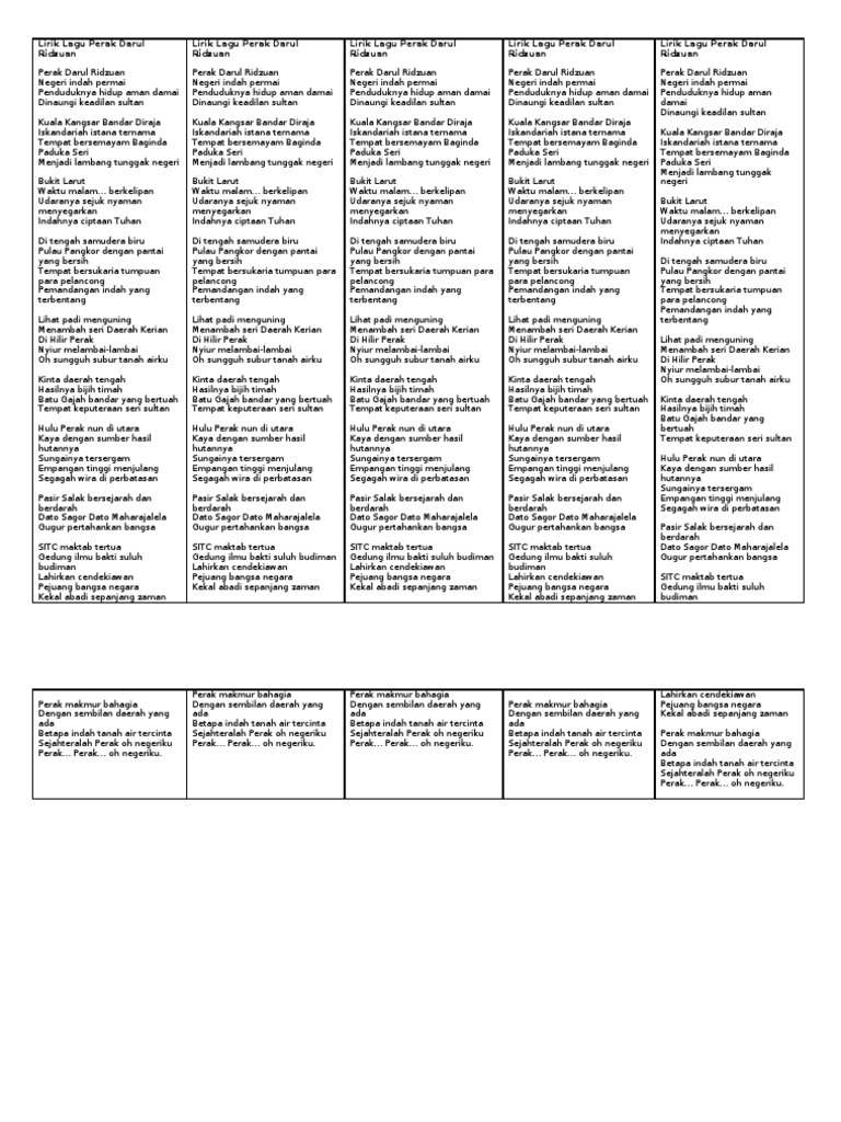 Lirik Lagu Negaraku Negeri Sekolah Perak Cemerlang Docx