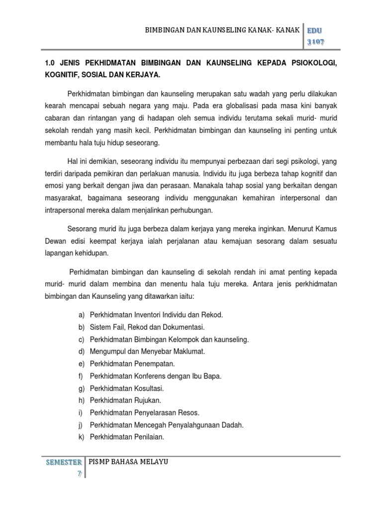 Doc Bimbingan Dan Kaunseling Sem 7 Nurshafieyah Ardinie Academia Edu