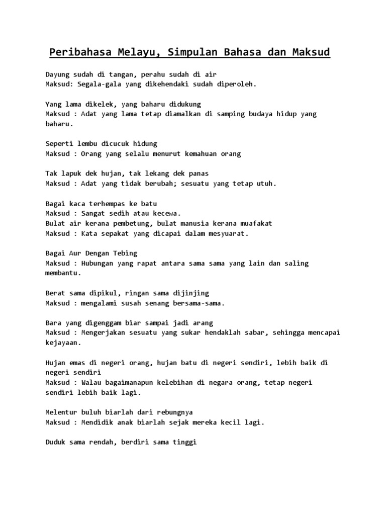 Peribahasa Melayu Simpulan Bahasa Dan Maksud
