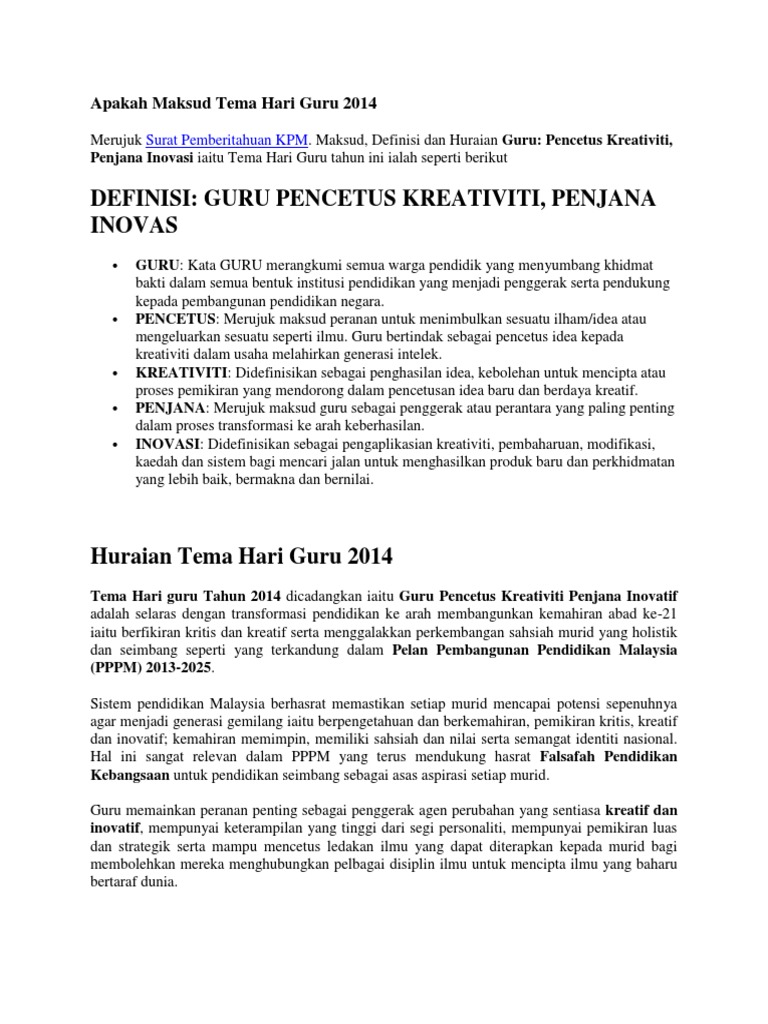 Apakah Maksud Tema Hari Guru 2014 Docx