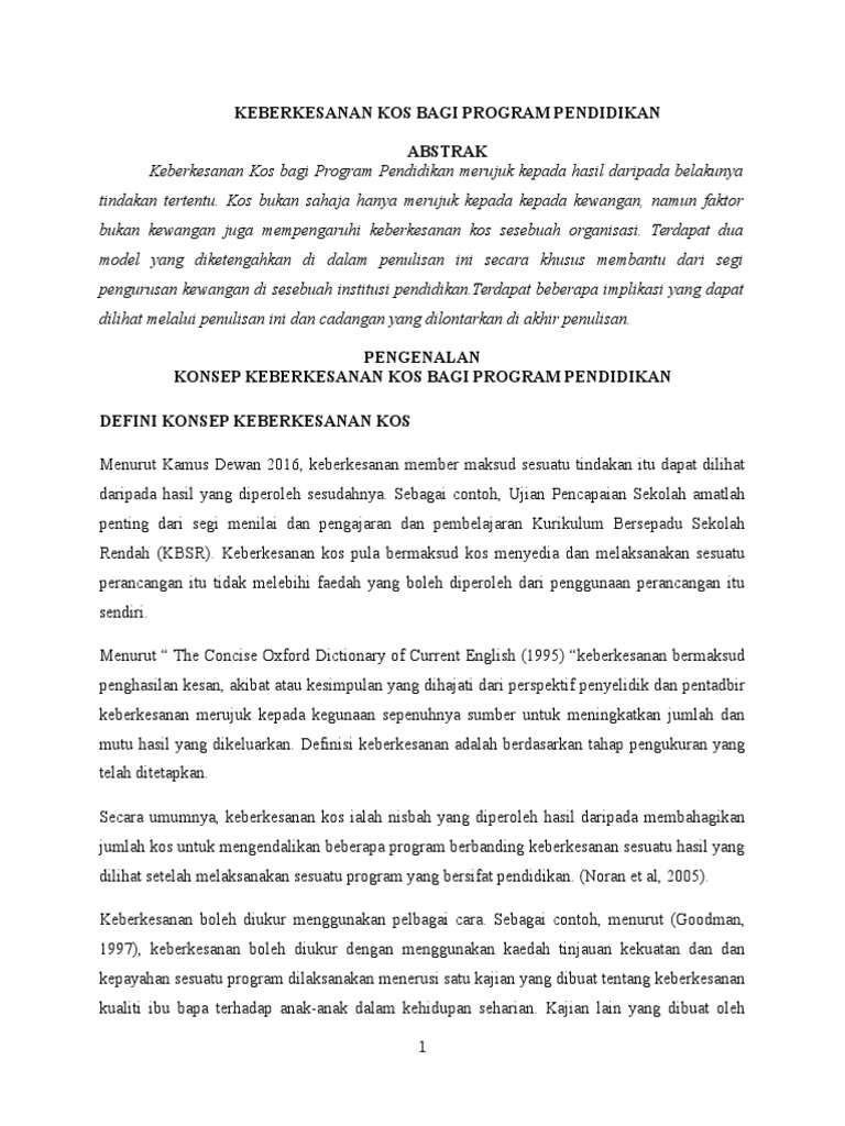 Keberkesanan Kos Bagi Program Pendidikan Turnitin