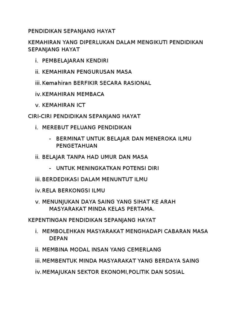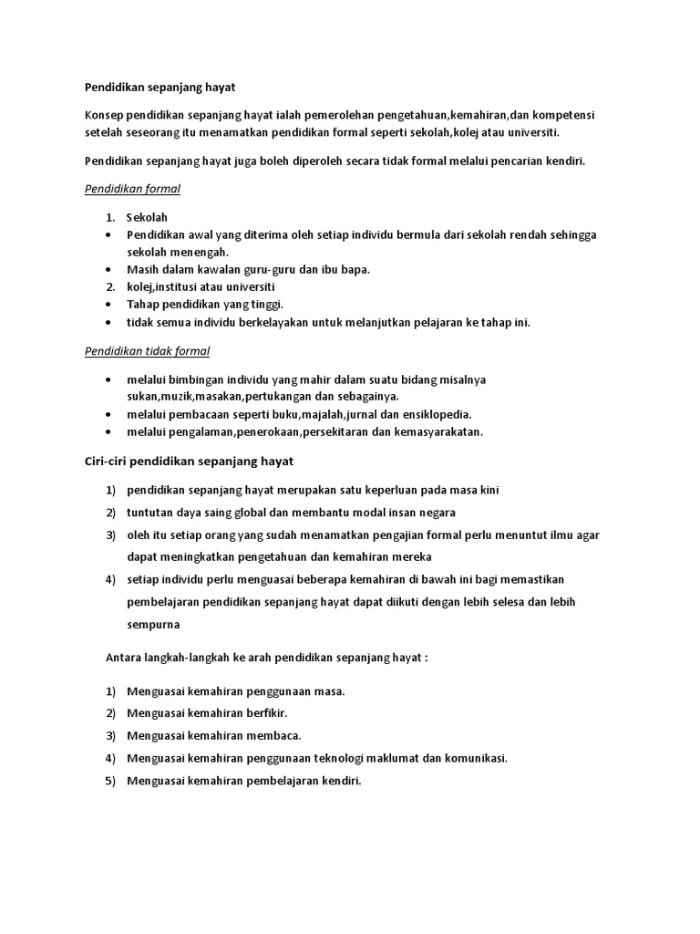 Bm Pembelajaran Sepanjang Hayat Ialah Konsep Pendidikan Yang Amat Penting Dalam Pembangunan Diri Manusia Apakah Yang Anda Fahami Dengan Konsep Ini Dan Course Hero