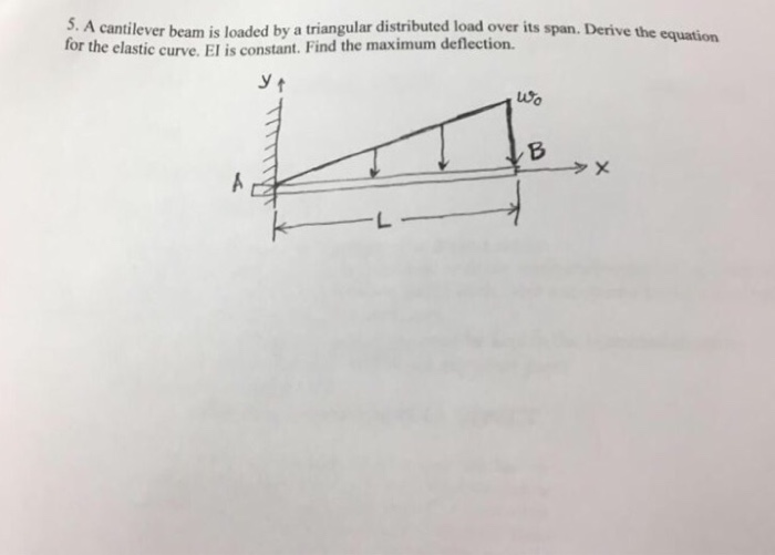 14 A Cantilever Beam Ab Supporting A Triangularly Distributed Load Of Maximum Intensity Q 0 Is Shown In The Figure Derive The Equation Of The Deflection Curve And Then Obtain Formulas For