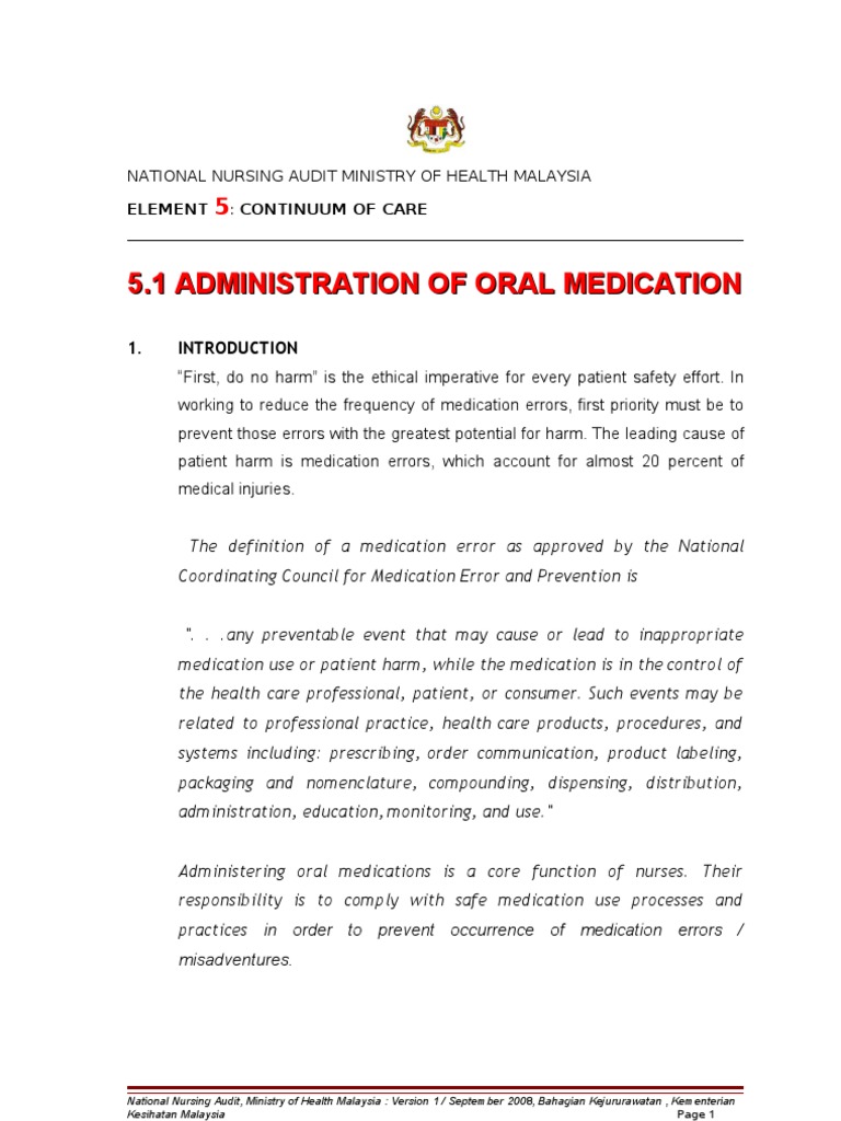 Adm Of Oral Medication Sep 08 Edited 3 Dec 2008 Medical Error Dose Biochemistry