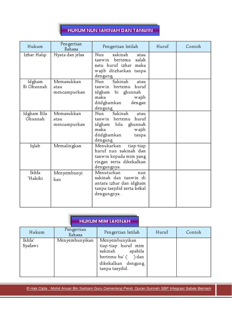 Hukum Nun Sakinah Tanwin Syukran Com