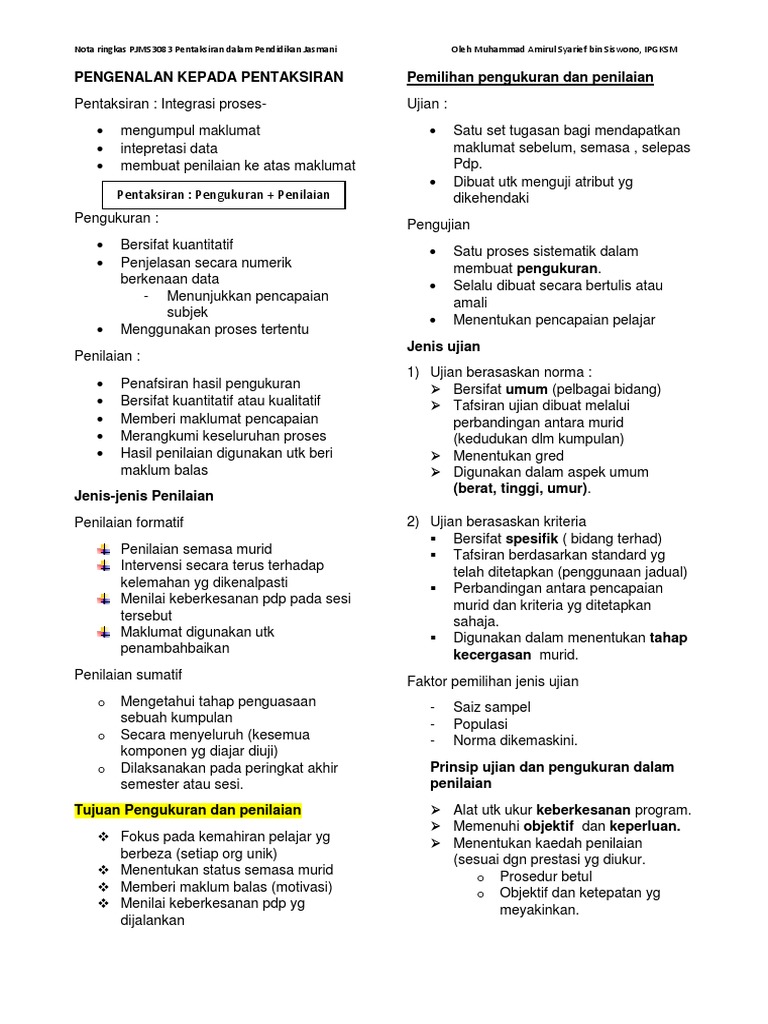 Nota Ringkas Edup3063 Pentaksiran Dalam Pendidikan