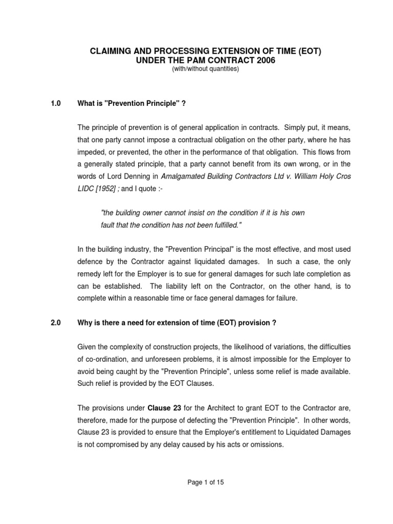 Agreement and conditions of pam contract 2006 with quantities pam contracts. Under the standard form pam contract 2006 without quantities and pam contract 2018 without quantities a contractor may be able to apply for an extension of time on account of the movement control order mco or the covid 19 pandemic.