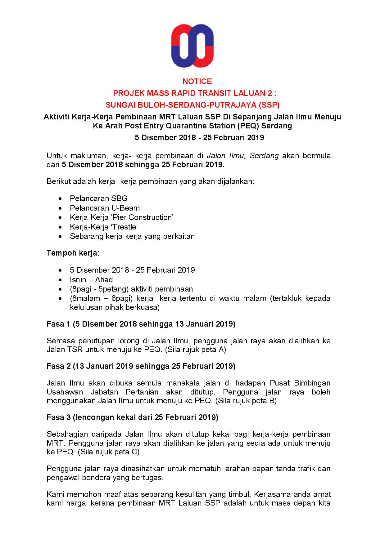 Mrt Corp On Twitter Notice Mrt Ssp Line Project Construction Activities Along Jalan Ilmu Towards Post Entry Quarantine Station Peq 5 December 2018 25 February 2019 Https T Co Etqtlj6ehd